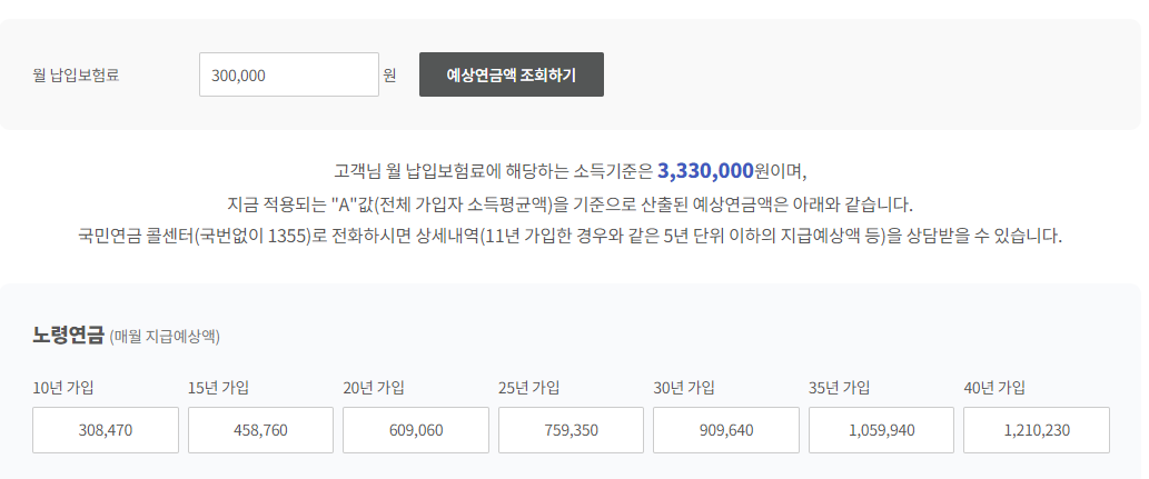 국민연금 예상수령액 모의 계산하기